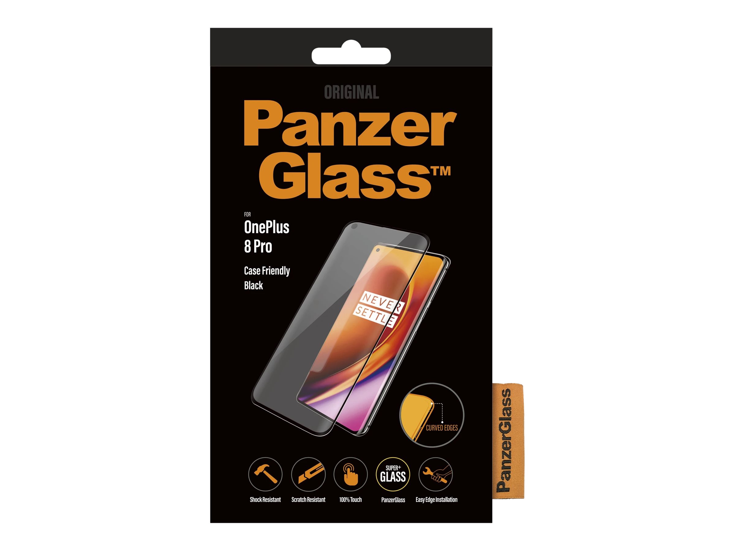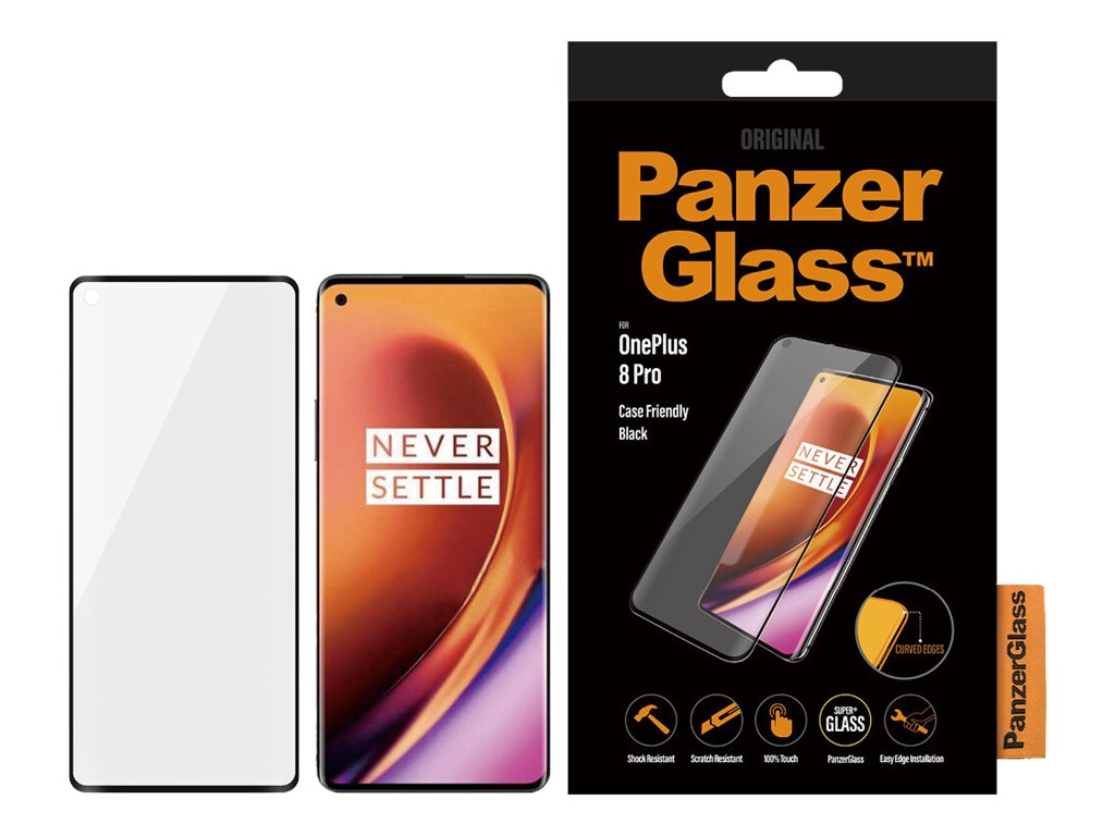 PanzerGlass | Screen protector | OnePlus | 8 Pro | Glass | Black | Full frame coverage; Rounded edges; Crystal clear; 100% touch preservation | Case friendly