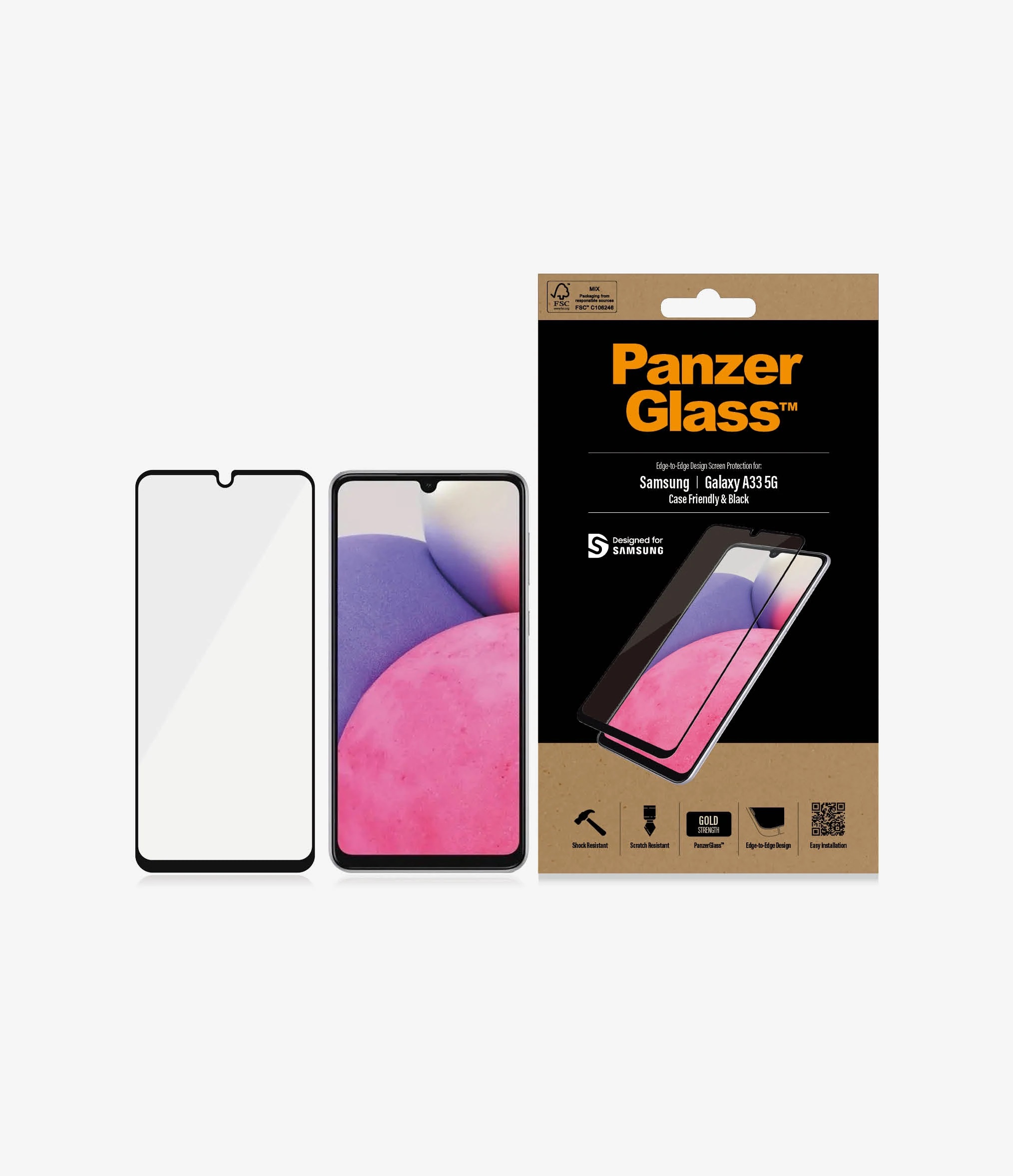 PanzerGlass | Screen protector | Samsung | Galaxy A33 | Glass | Black | Case Friendly