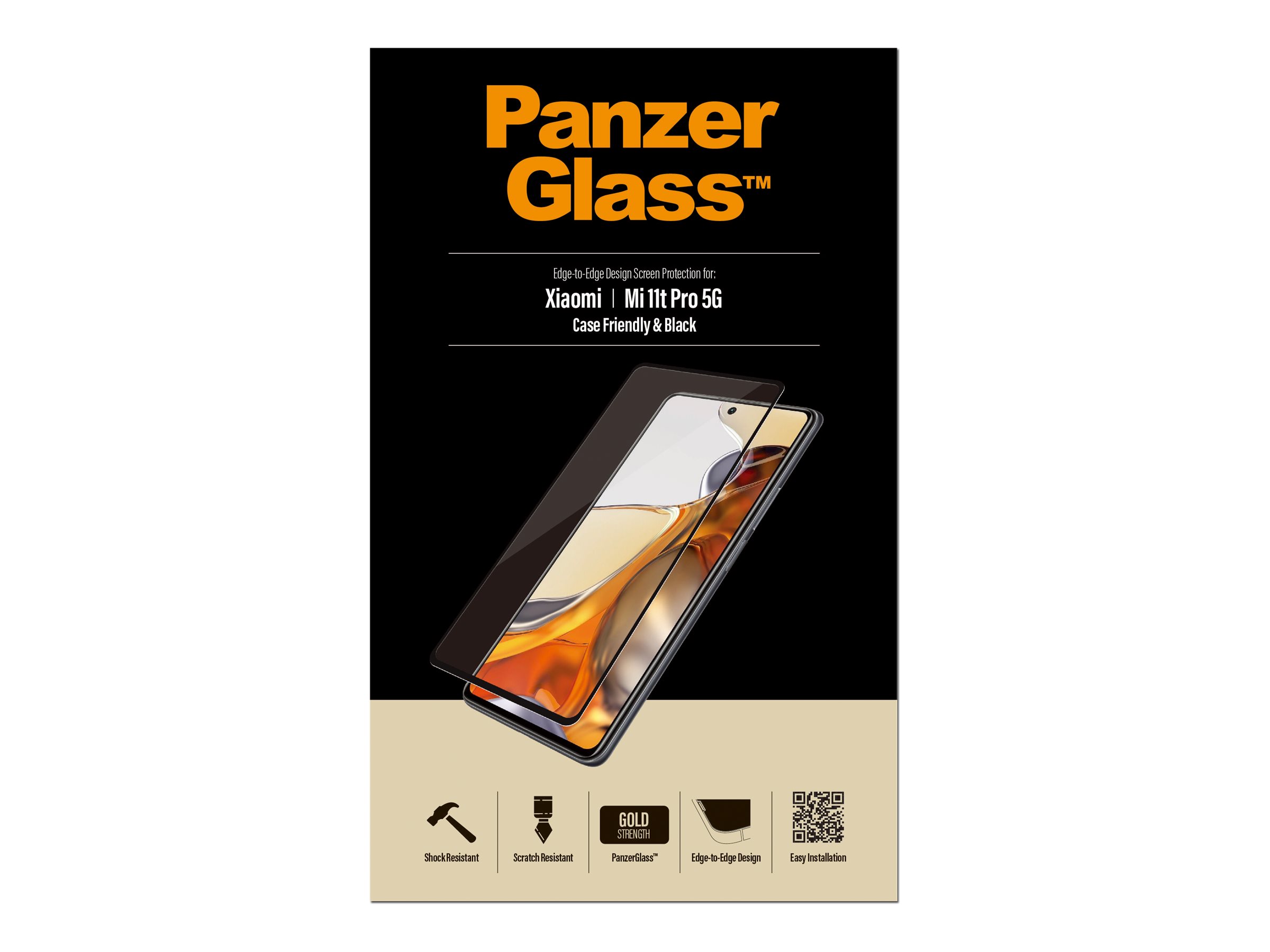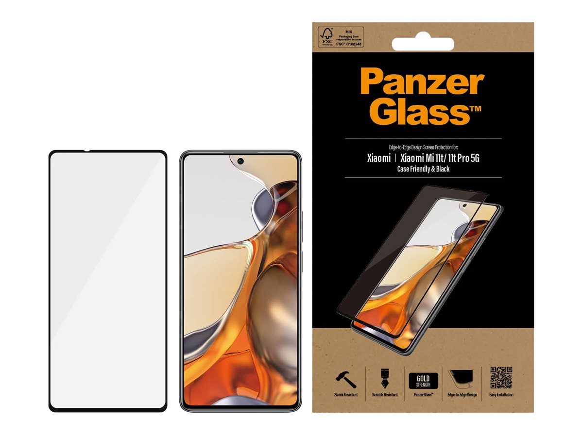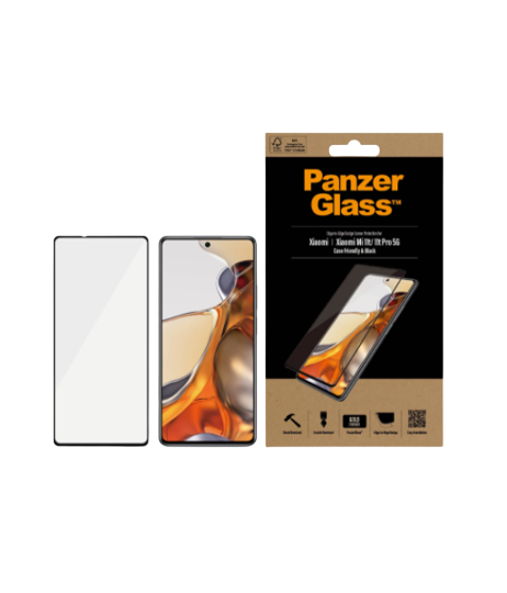 PanzerGlass | Screen protector | Xiaomi | Mi 11t/Mi 11t Pro 5G | Glass | Black | Full frame coverage; Rounded edges; 100% touch preservation | Case friendly