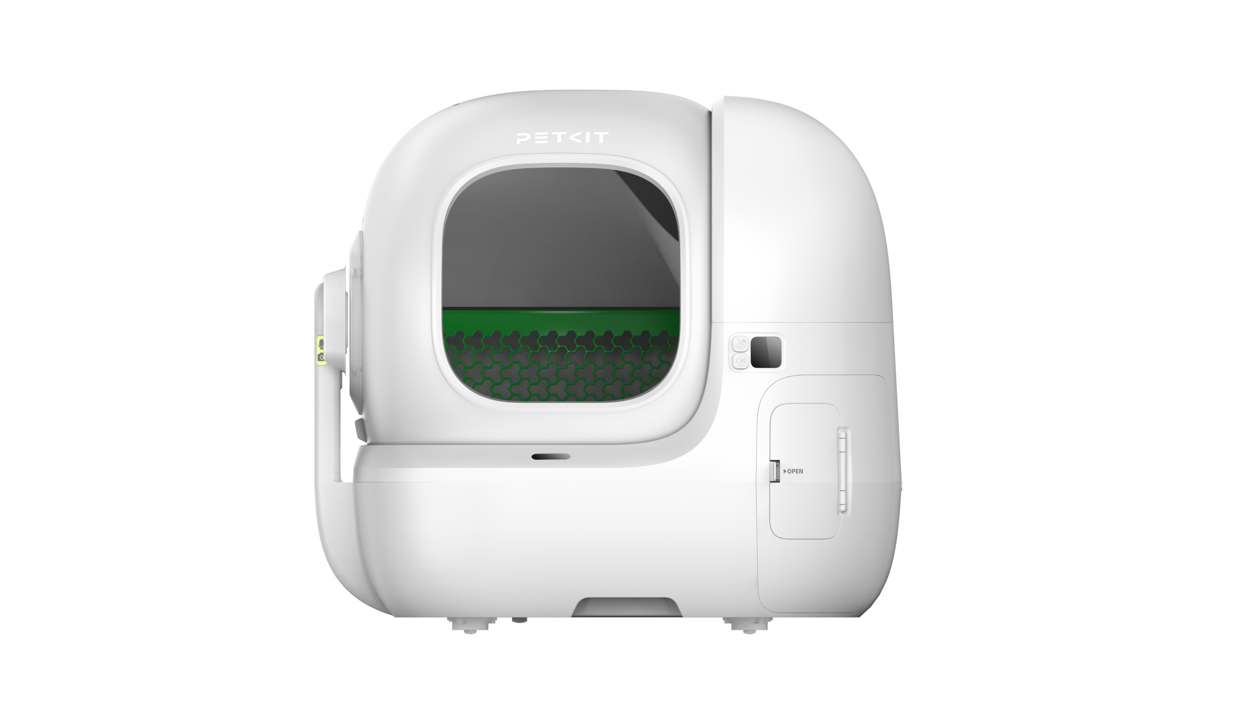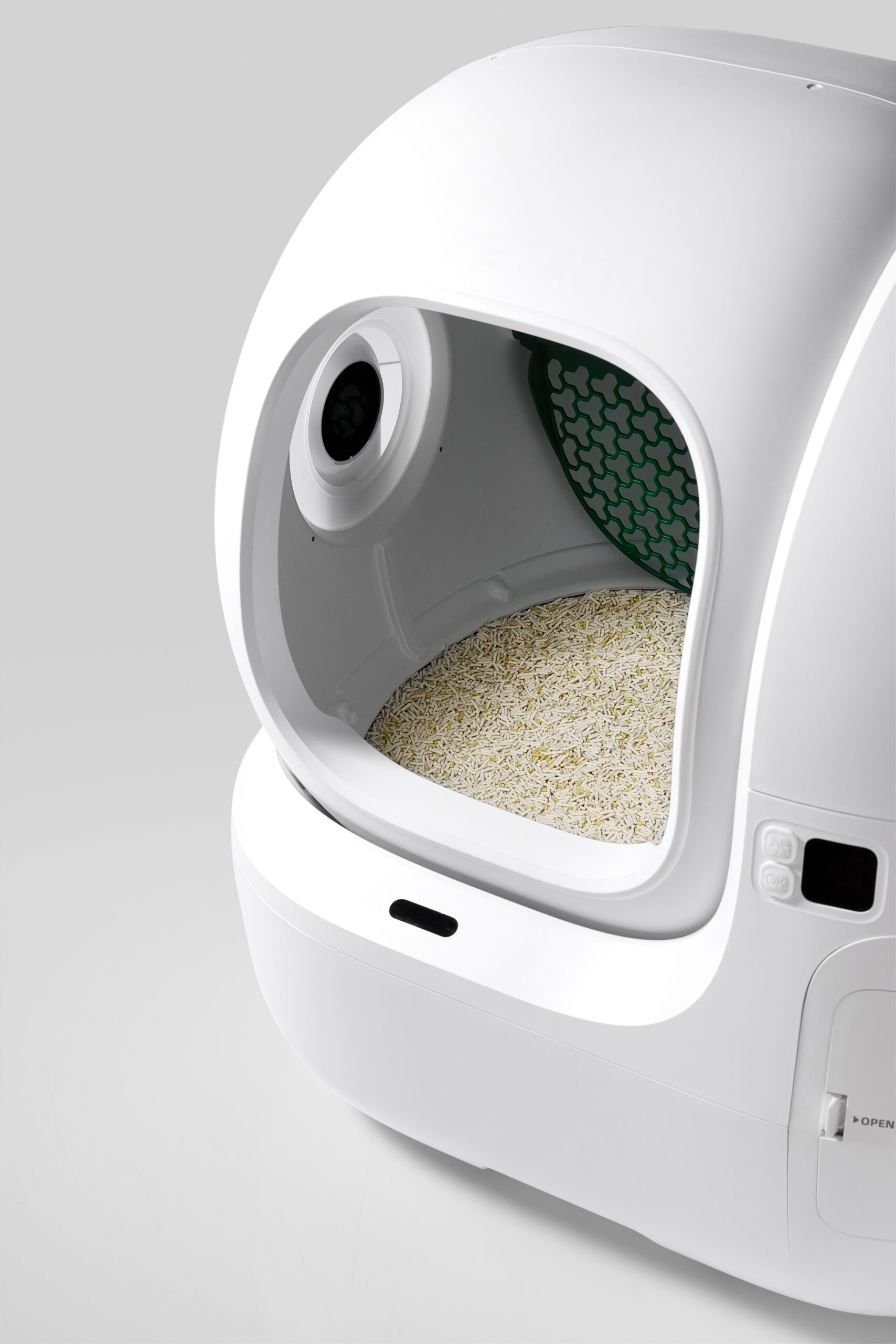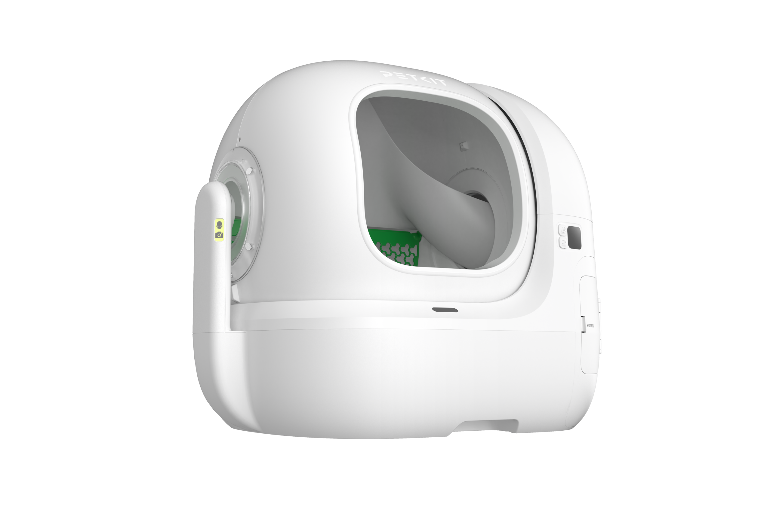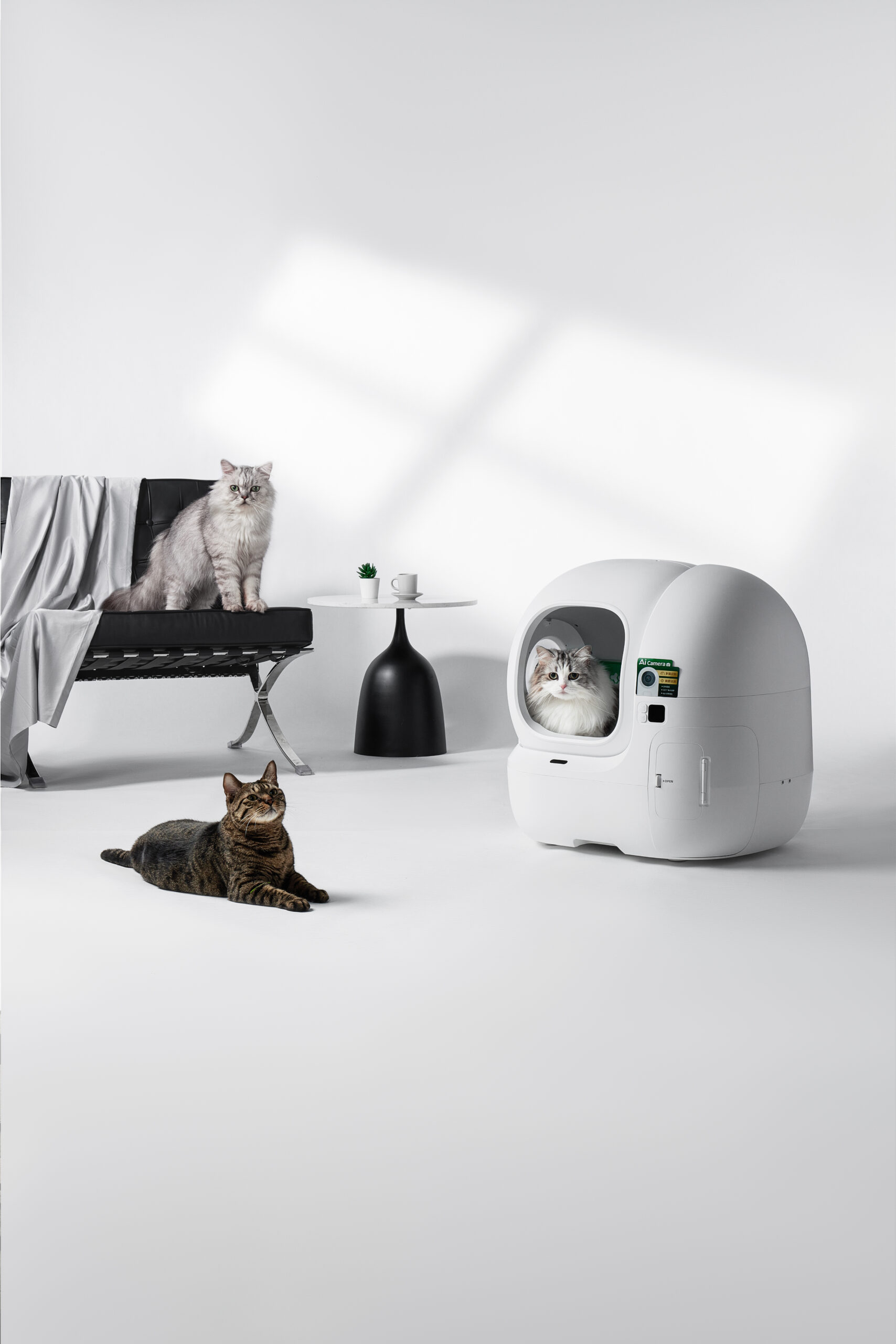 | Kitos savybės | Bigger Entry for Easy In & Out; AI Camera for Tracking Litter Box Usage & Urinary Health Monitoring; Multi-cat Recognition; Smart App Control & Health Insights; 17 Days Free-scooping (8L Waste Bin); Contactless Drawstring Waste Packing; Triple Odor Control; 100% Safety Protection; Patented Leak-proof Cylinder; Ultra Quiet |
