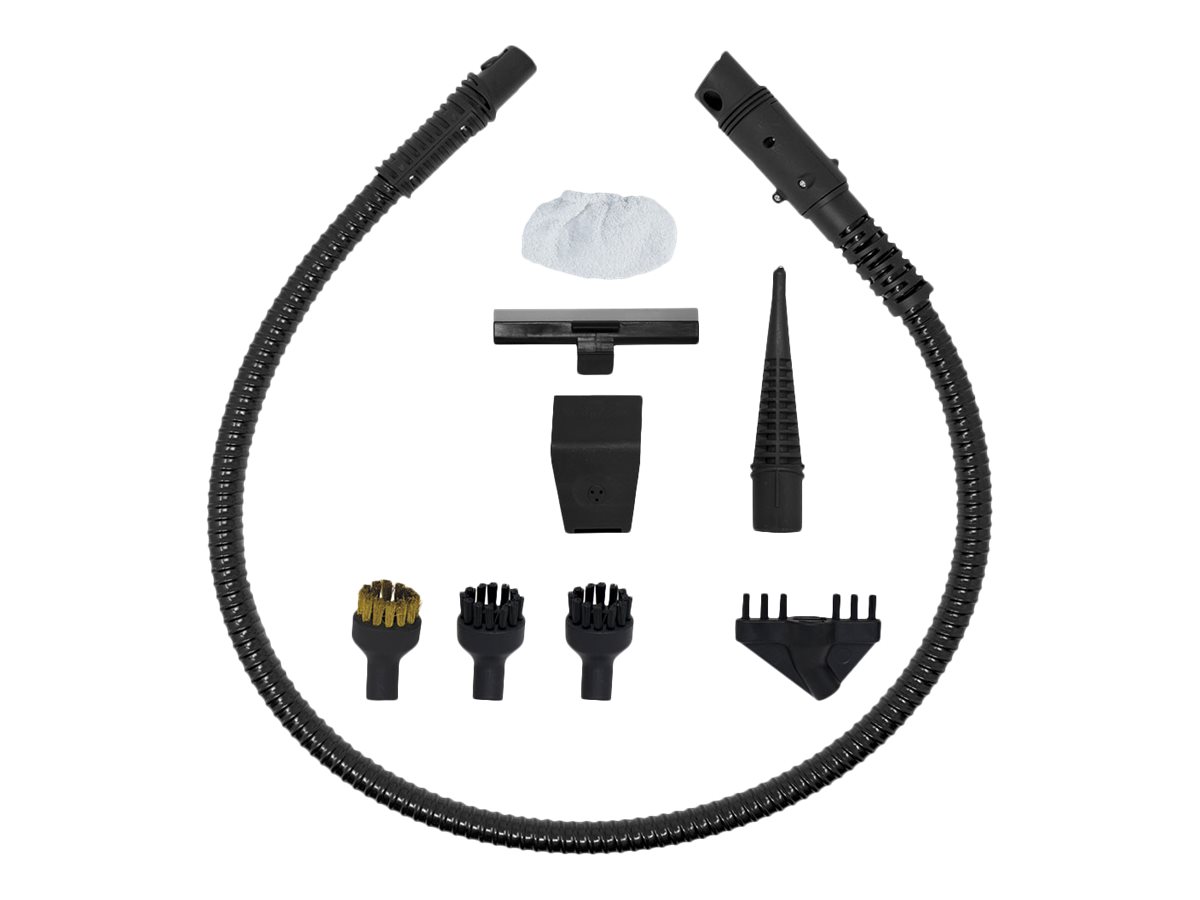 | Priedai pridėti | 3 x Floor cloths; Sockette; Flexible steam hose; Steam lance; Window cleaner frame; Round brush with brass bristles; 2 x Round brushes with nylon bristles; Grout accessory; Upholstery accessory |