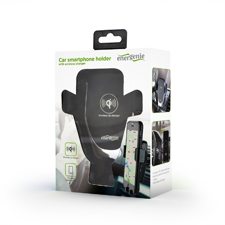 EnerGenie | EG-TA-CHAV-QI10-01 | Car smartphone holder with wireless charger | Built-in charger | Universal smartphone car holder with built-in wireless Qi fast charger, 10 W fast wireless Qi charging function to charge your phone while driving, Practical auto-lock system, suitable for use with phones from 65 to 85 mm wide, Rotating/tilting phone holder with secure fixation on almost any air vent | 77 g