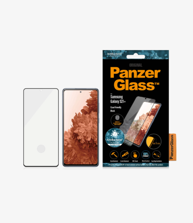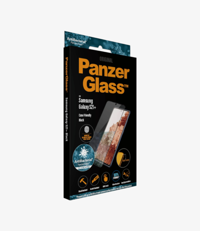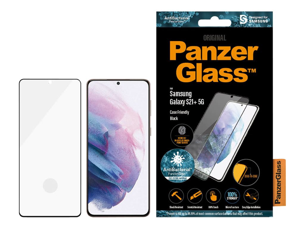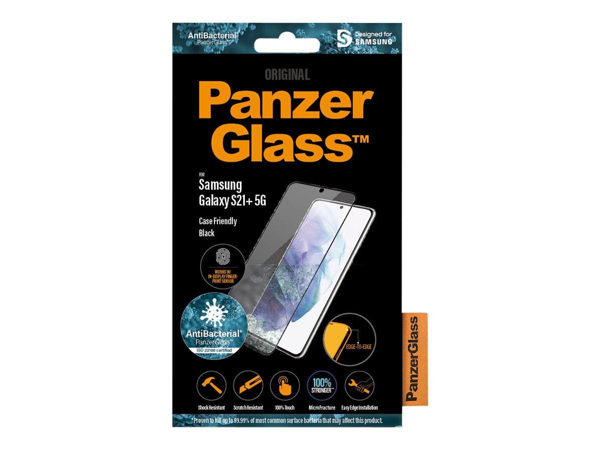 PanzerGlass | Samsung | Galaxy S21+ Series | Antibacterial glass | Black | Case Friendly, Compatible with the in-screen fingerprint reader | Antifingerprint screen protector