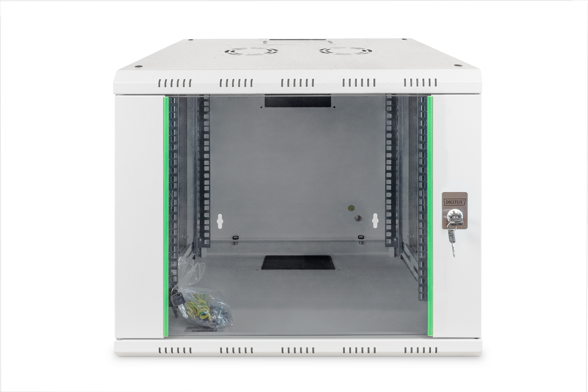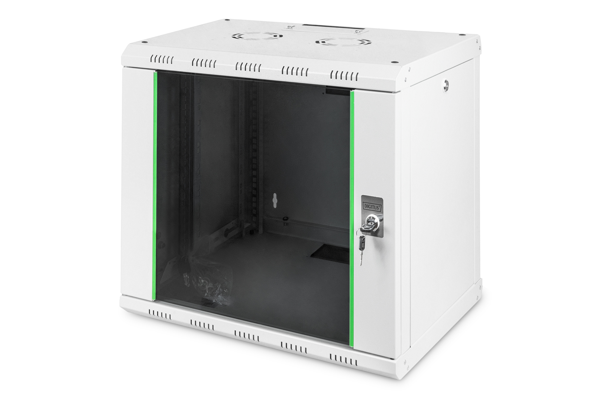 Digitus | Wall Mounting Cabinet | DN-19 09-U | Grey | IP protection class: IP20; Front door: Glass door, single opening; Cabinet type: Wall mounting cabinet; Equipment mounting depth min.-max.: 305-370 mm; Load capacity: 100 kg; Dimensions: 509 x 600 x 450 mm