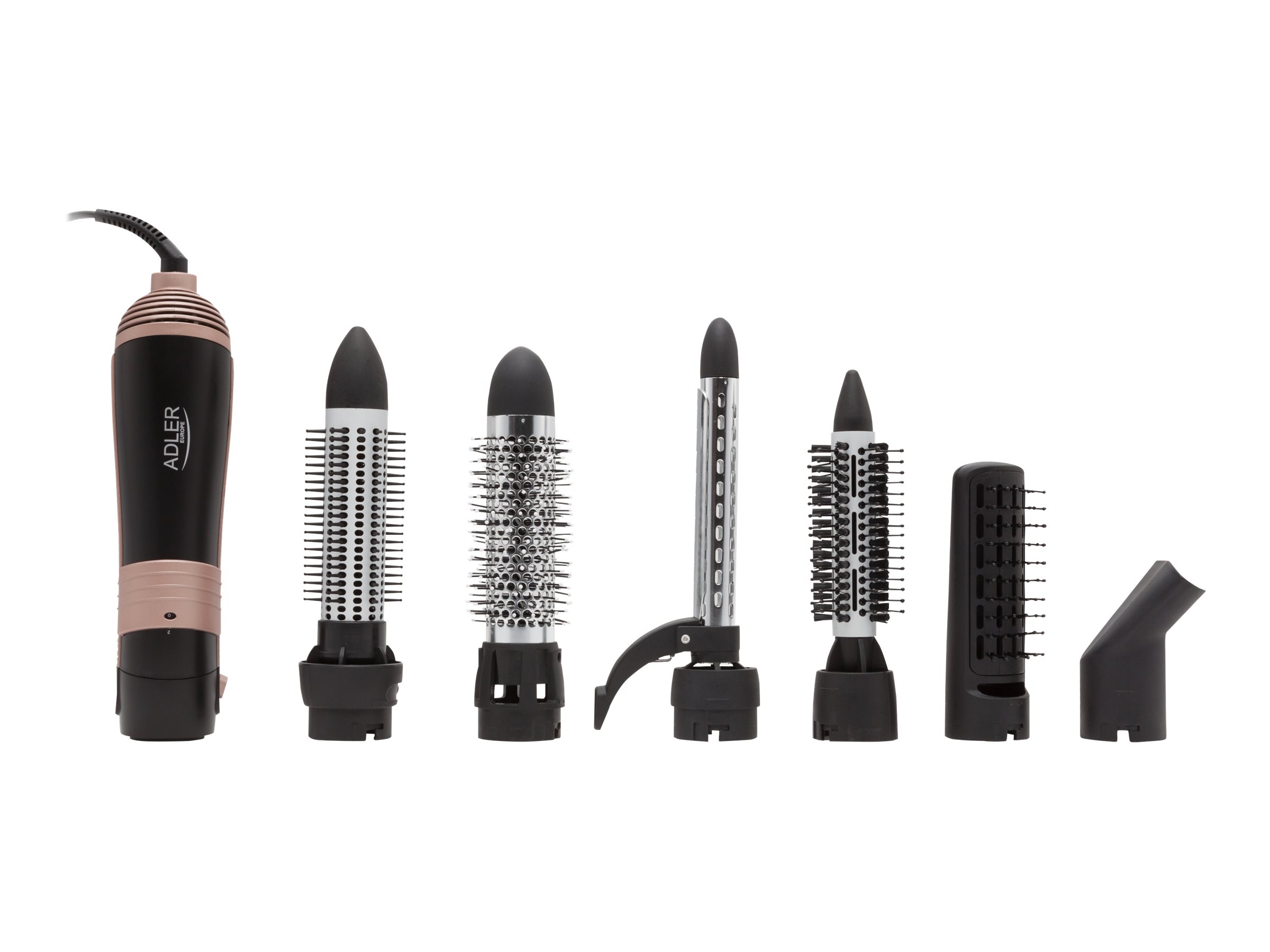 | Plaukų priežiūros reikmenys | 6 exchangeable brushes |