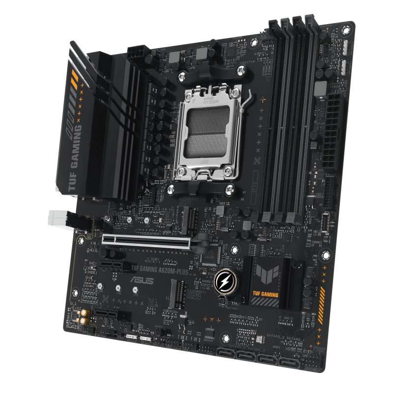 Asus | TUF GAMING A620M-PLUS | Processor family AMD | Processor socket AM5 | DDR5 DIMM | Memory slots 4 | Supported hard disk drive interfaces SATA, M.2 | Number of SATA connectors 4 | Chipset AMD A620 | Micro-ATX