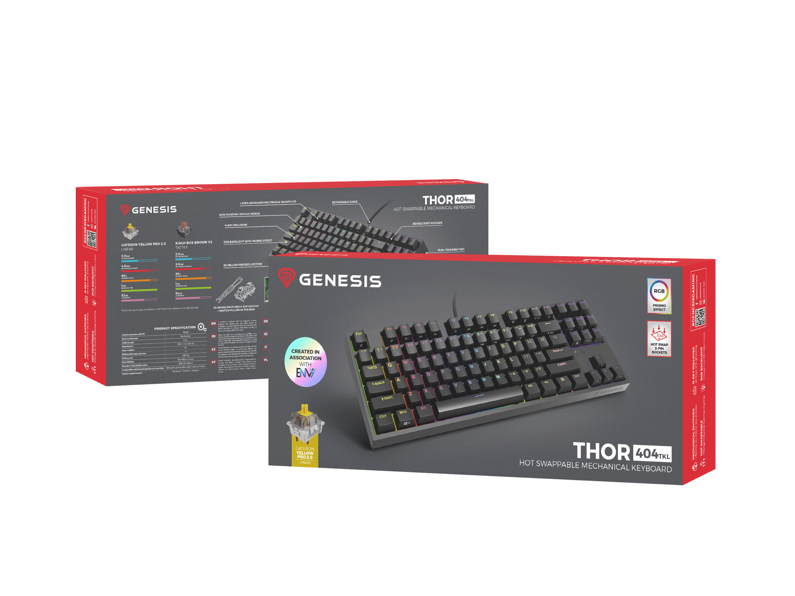 Genesis | THOR 404 TKL | Mechanical Gaming Keyboard | Wired | US | RGB | Black | USB-A | Gateron Yellow Pro