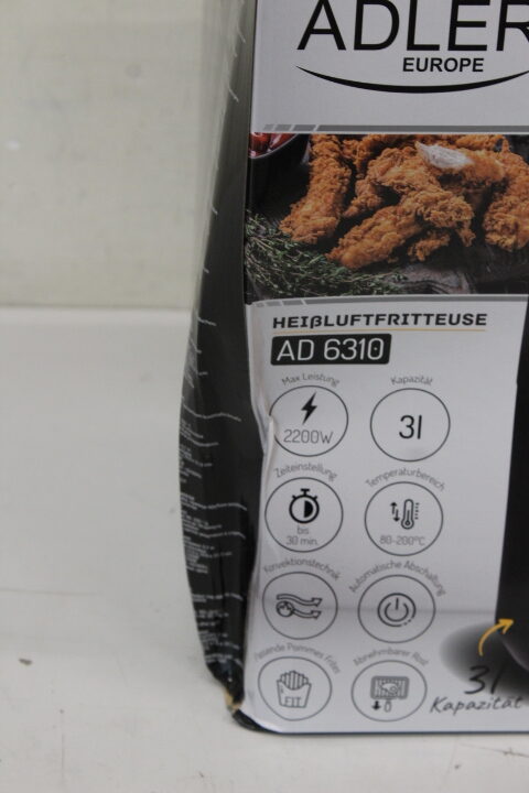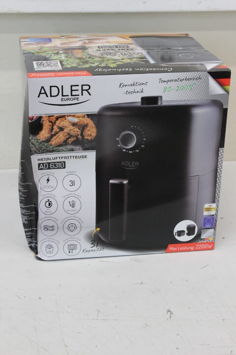 IŠPARDAVIMAS. Adler | Airfryer | AD 6310 | Power 2200 W | Capacity 3 L | High-volume hot-air circulation technology | Black | PAŽEISTA PAKUOTĖ, SCRATCHES ON TOP