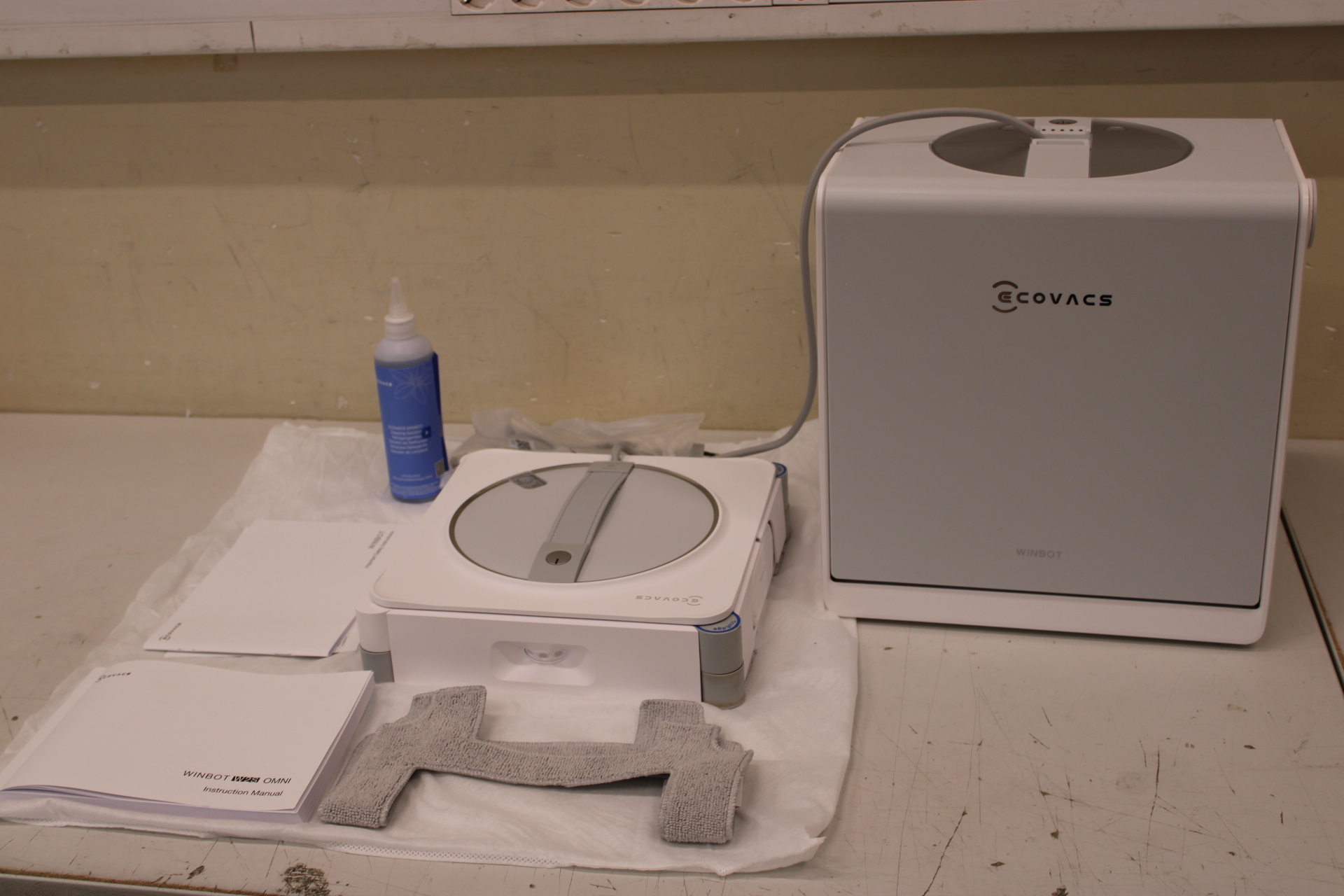 IŠPARDAVIMAS. Ecovacs WINBOT W2S OMNI Window cleaning robot, White/Silver | Ecovacs Window Cleaning Robot | WINBOT W2S OMNI | Corded | 8000 Pa | White | USED, DIRTY