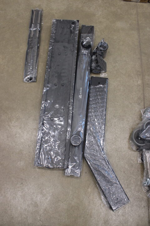 Kitos savybės Adjustable height. Cable management for smart installation. Includes 4 non-marking braked casters. All necessary mounting hardware included