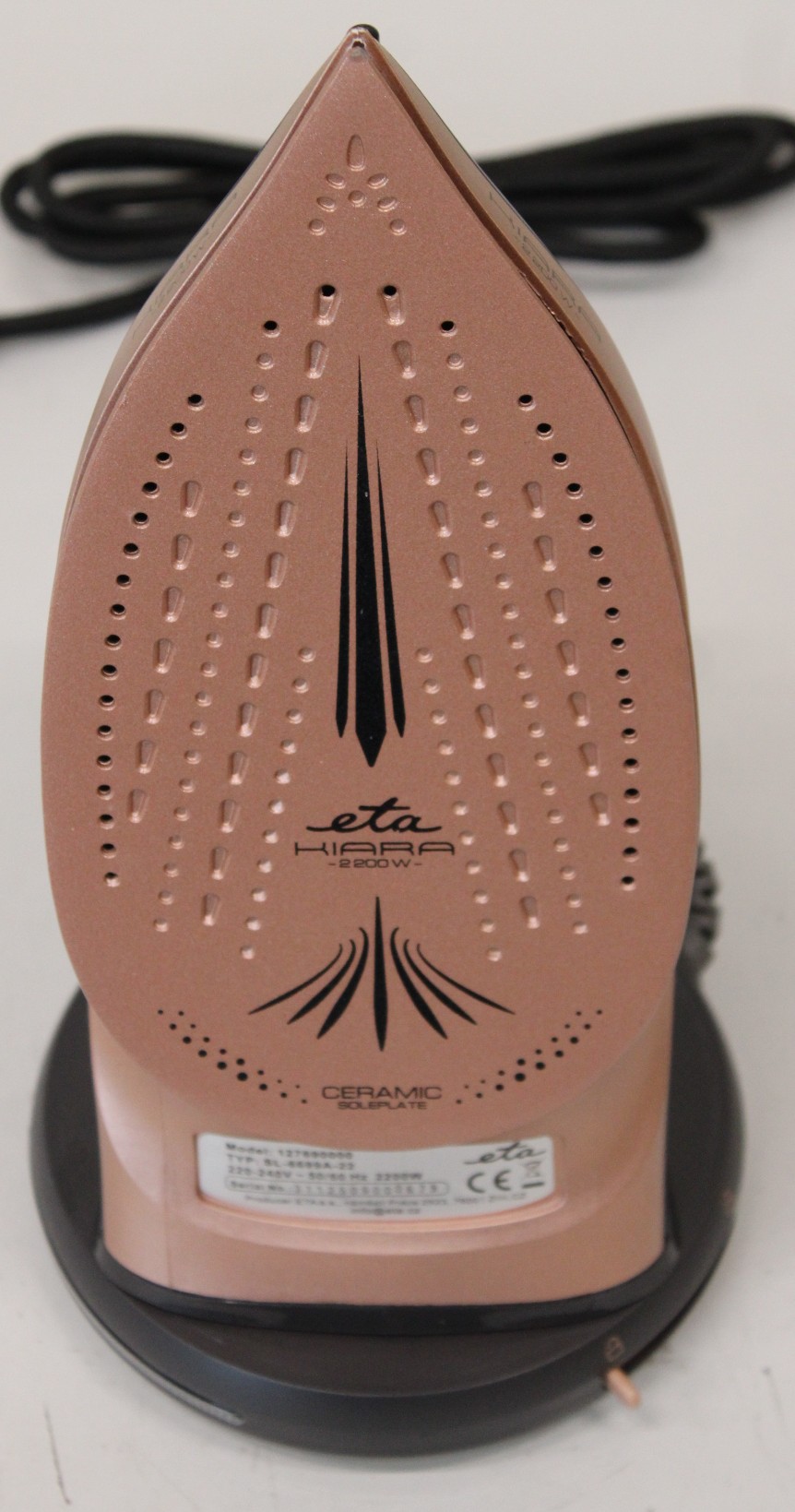 IŠPARDAVIMAS. ETA ETA127690000 Kiara Iron, Ceramic, 2200 W, Water tank 220 ml, Black | ETA | Iron | Kiara ETA127690000 | Cordless Steam Iron | 2200 W | Water tank capacity 220 ml | Continuous steam 40 g/min | Steam boost performance 90 g/min | Black | PAŽEISTA PAKUOTĖ, BROKEN WATER CUP, SCRATCHED, SCRATCHED PAINT FROM FRONT OF IRON