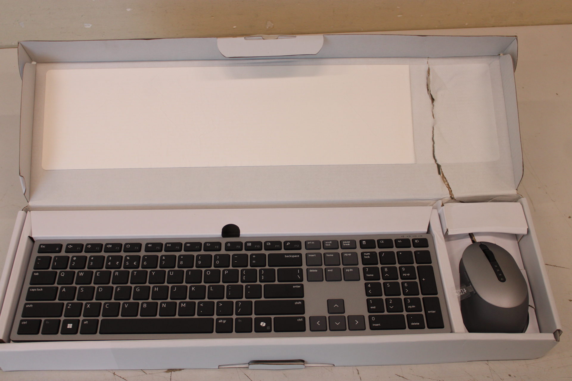 IŠPARDAVIMAS. | IŠPARDAVIMAS. Dell | Premier Multi-Device Keyboard and Mouse | KM7321W | Keyboard and Mouse Set | Wireless | Batteries included | US | PAŽEISTA PAKUOTĖ, SCRATCHED ON MOUSE LOWER PART | Titan grey | Wireless connection