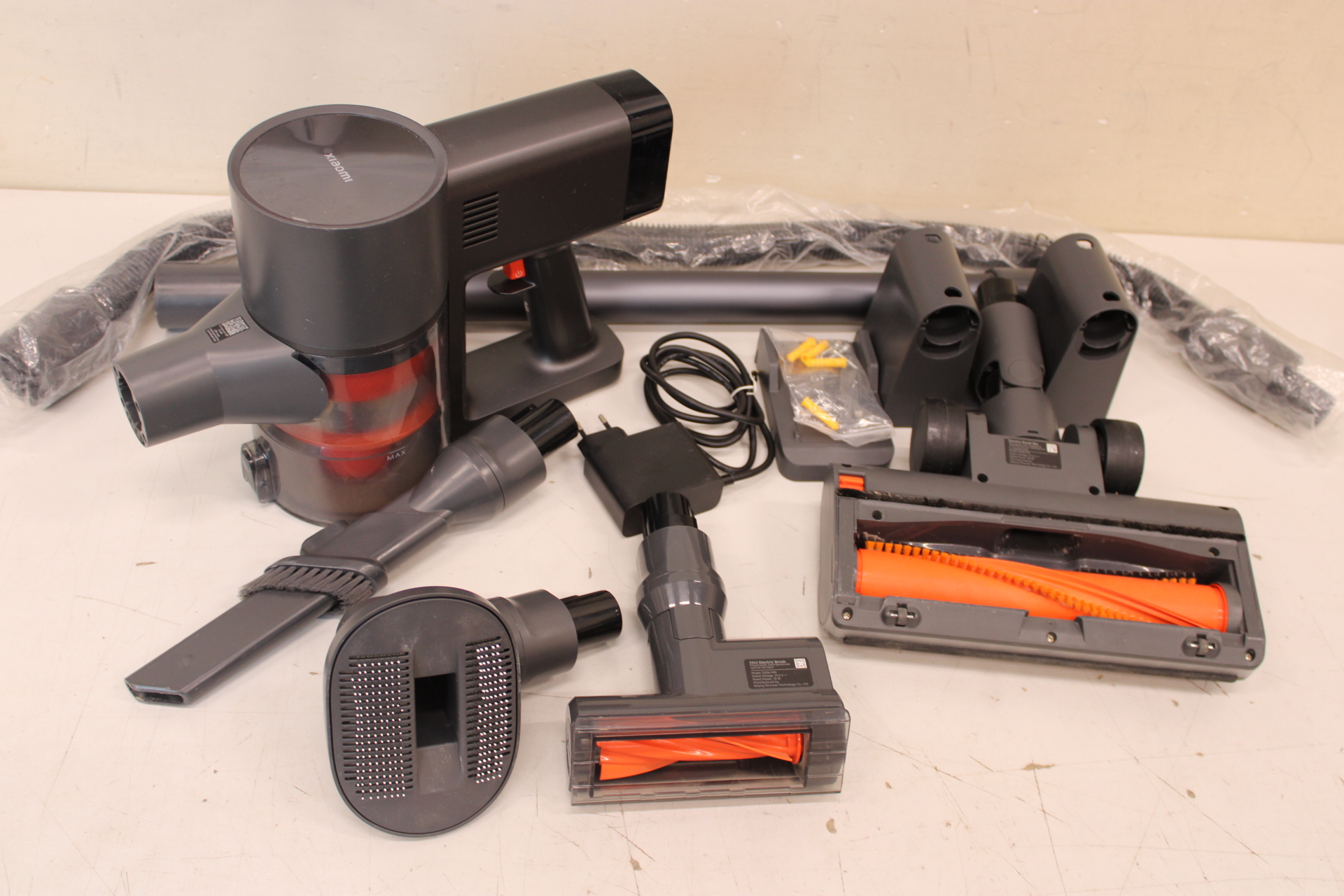 | Priedai pridėti | 1x Extension Rod; 1x Power Supply; 1x Extension Hose; 1x 2-in-1 Brush Nozzle; 1x Mini Electric Brush; 1x Pet Brush; 1x Electric Brush Bar; 1x Vacuum Cleaner Wall Mount; 1x Accessory Wall Mount; 1x Mount Kit |