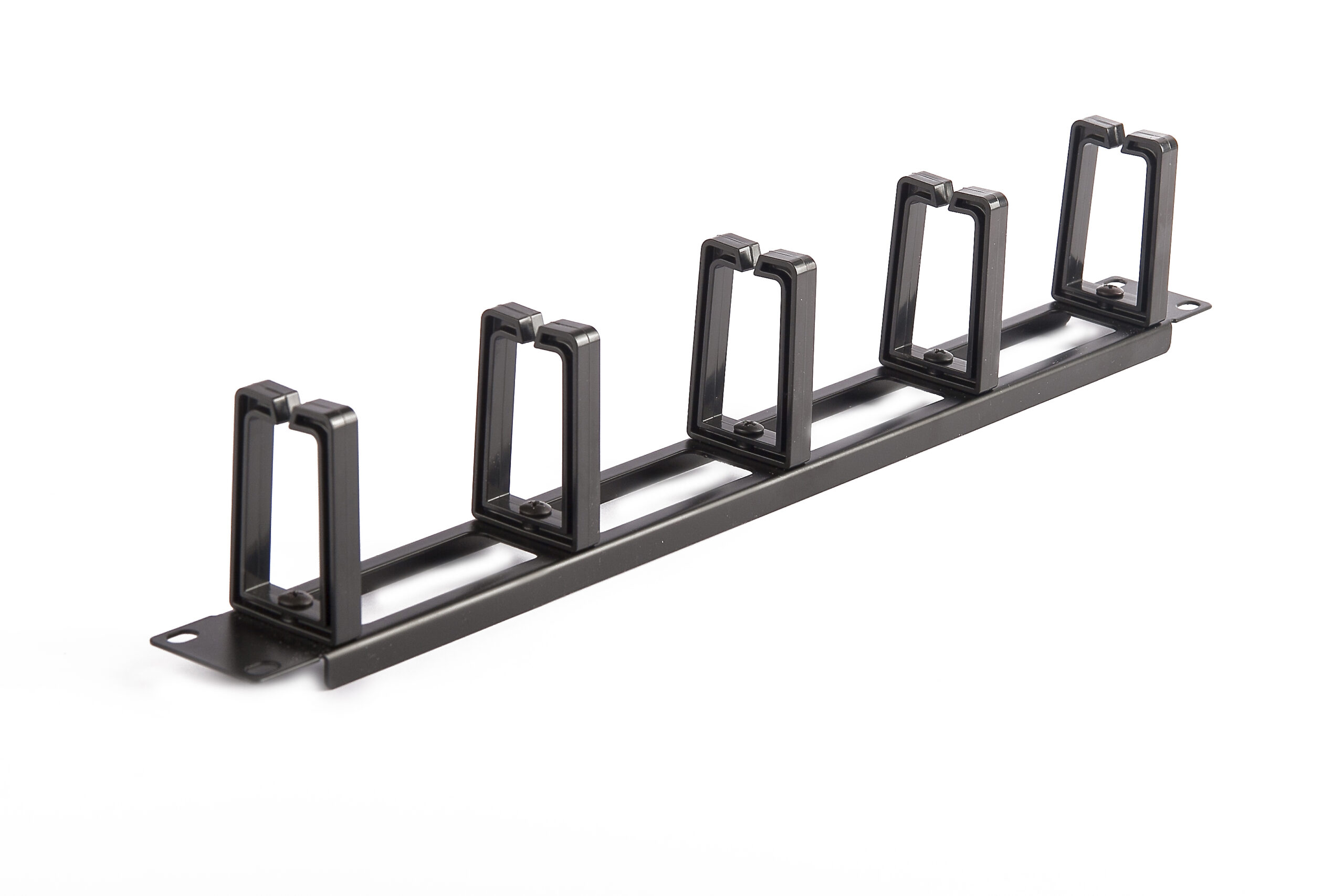 SOMI Networks | 19“ Cable Management Bar with 5pcs Plastc Rings | CMB-02 | Black | Ring Diameter 45x70mm; Holes in the Panel