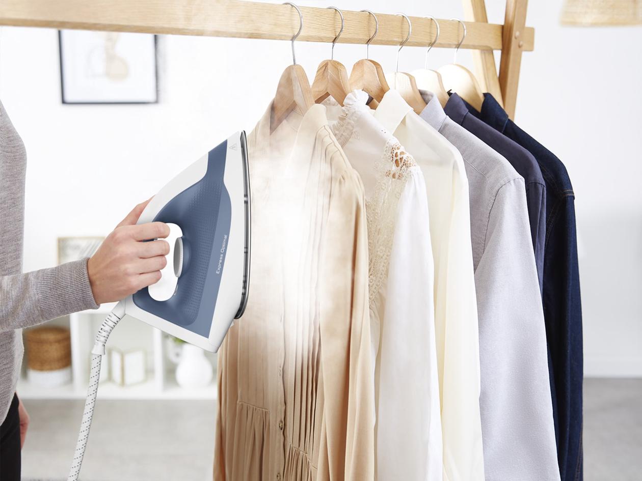 TEFAL Steam generator iron | FV2C41E0 Express Optimal | 2400 W | 1.2 L | 5 bar | Auto power off | Vertical steam function | Calc-clean function | Blue/White