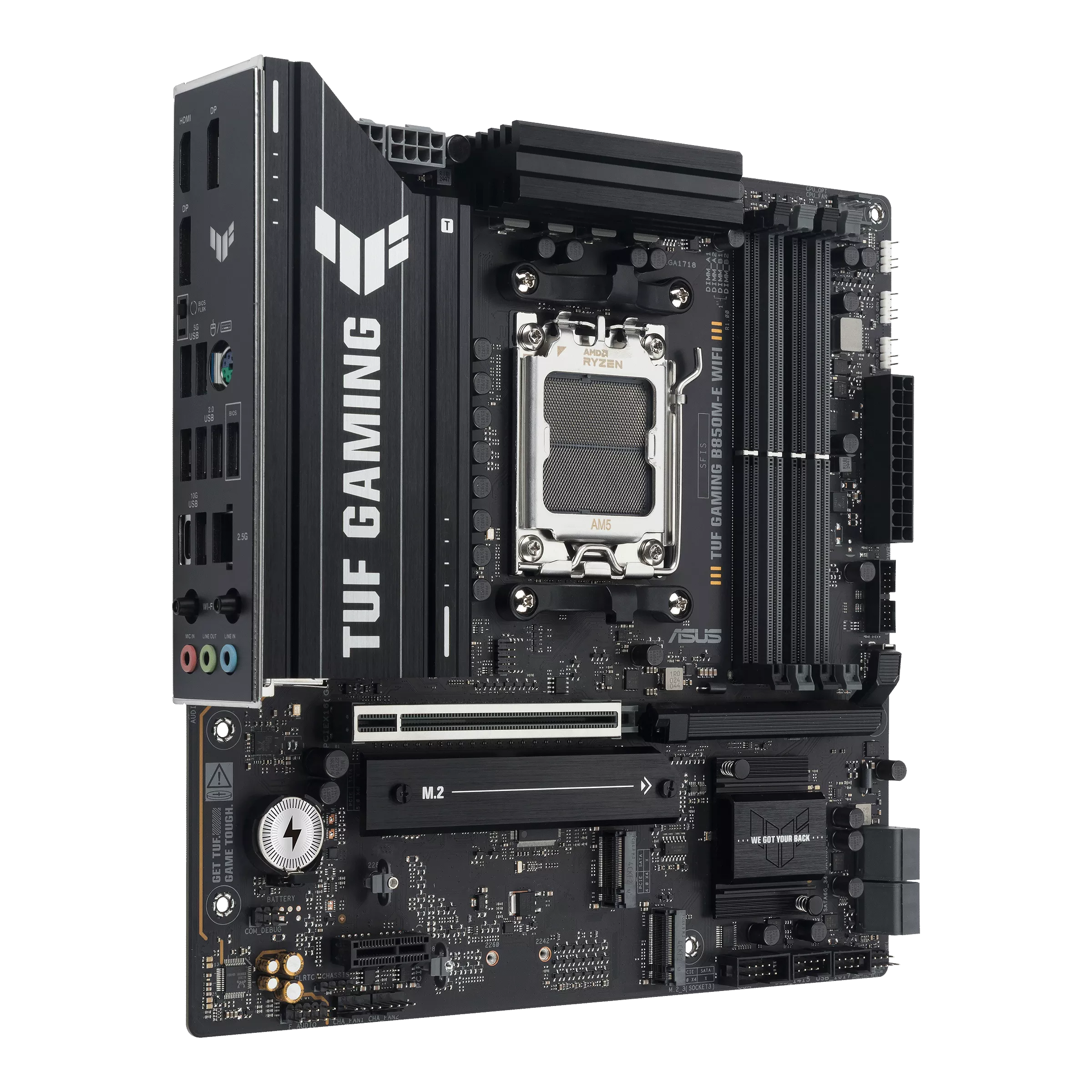 Asus TUF GAMING B850M-E WIFI | Processor family AMD | Processor socket AM5 | DDR5 | Supported hard disk drive interfaces SATA, M.2 | Number of SATA connectors 4